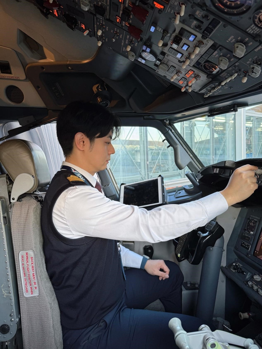马天元在飞机驾驶舱。