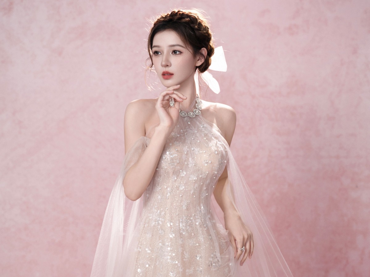 盘起的发丝挽成温婉的发髻,几缕碎发轻轻垂在鬓边,kaiyun sports添了几分即兴的慵懒,发间系着的白色蝴蝶结,似春日里落在枝端的初雪,白皙又俏皮。颈间的钻饰项链贴合着锁骨的抽象,细碎的钻光与纱裙的亮片交相照映,莫得繁复的堆砌,却在细节处彰较着邃密无比。她的视力时而望向镜头,透露里带着一点疏离;时而轻抬下颌,似在捕捉风的轨迹,每一个样式齐让柔好意思的妆造多了几分鲜嫩的心理,仿佛下一秒便会迈步走出这粉雾布景,走进烟火东说念主间。