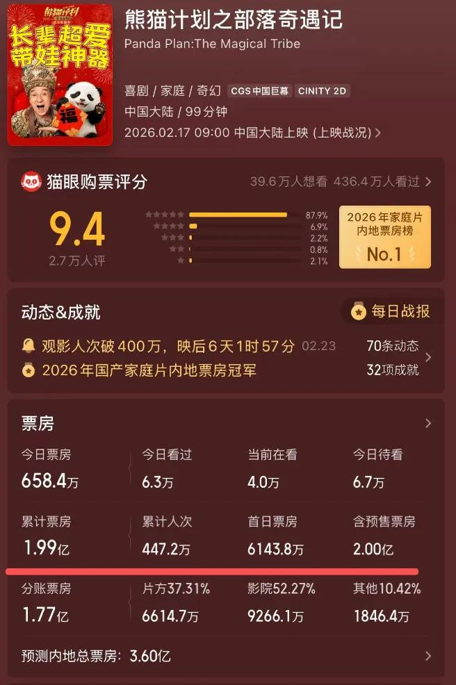 电影到了当今还不敢开分,但票房收货王人出来了,7天的本事票房不及两亿,高赞网友以致打出了“本片唯独优点和亮点应该即是片长吧”的驳斥。